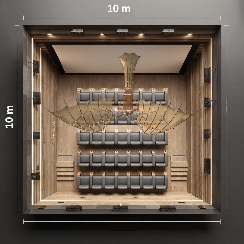 Con la nostra tecnologia, trasformiamo spazi da 70 a 100 mq in vere e proprie sale immersive, dove le opere d’arte (dipinti e sculture) si proiettano fino a 4-5 metri dalla parete, apparendo al centro della stanza in tutta la loro potenza visiva.